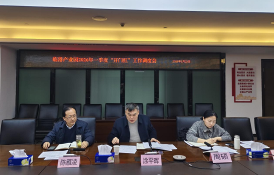 1月23日上午,武汉长江新区临港产业园召开2026年一季度“开门红”工作调度会。长江新区二级巡视员涂平晖同志主持会议并讲话,临港产业园党委书记、主任周硕,党委副书记、副主任陈雁凌出席会议,各部门主要负责人参加会议。