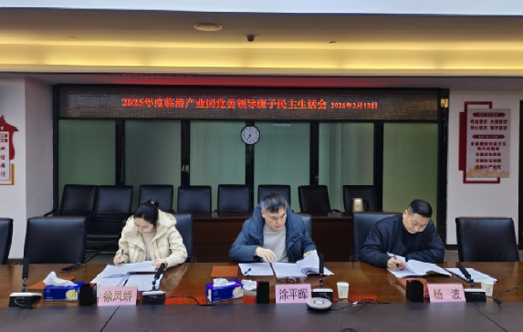 2月13日,临港产业园党委领导班子召开2025年度民主生活会,临港产业园党委书记、主任周硕,党委副书记、副主任陈雁凌,党委委员、副主任万建华出席会议,长江新区二级巡视员涂平晖,长江新区党工委第六督导组、党工委组织部副部长杨波到会指导。