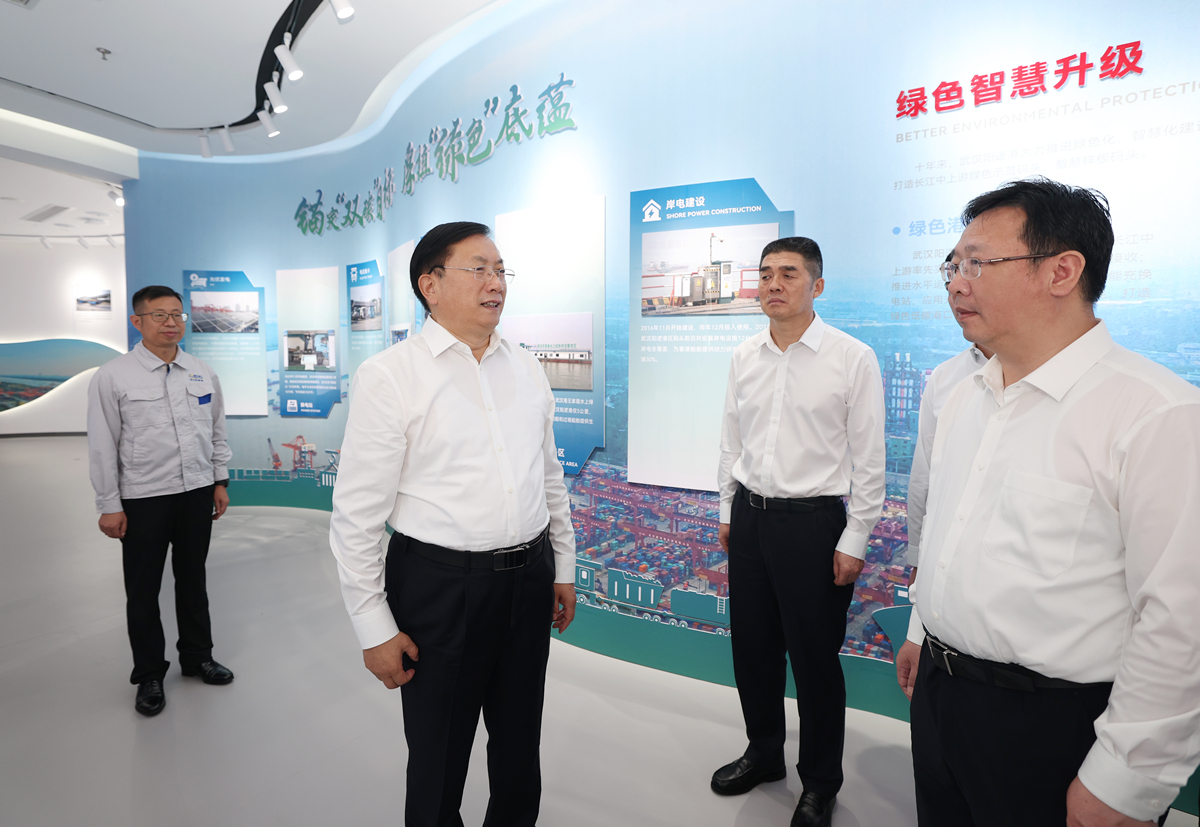 2013年7月,习近平总书记在武汉新港阳逻集装箱港区考察时,要求长江流域加强合作,把全流域打造成黄金水道。经过十年发展,阳逻港已成为中西部地区物流集散转运中心和重要“出海口”,我省及周边货物可直接从阳逻港乘船抵达日韩等国,相关国家货物也可在此转乘中欧班列(武汉)运抵欧洲。王忠林来到阳逻港,参观习近平总书记考察阳逻港十周年专题展,察看江海直达航线开辟和智慧绿色港口建设工作情况,强调要牢记习近平总书记殷殷嘱托,大力推动多式联运、江海联运,更好发挥长江黄金水道作用,助力打造国内大循环的重要节点和国内国际双循环的重要枢纽。