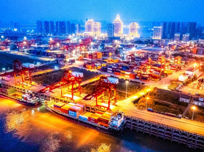 今年,花山、汉南港区获批临时开放,武汉港开放口岸扩大至3个港区7个泊位。更令人振奋的是,5年来武汉港相继开通直达日本、韩国、俄罗斯等国的国际直航航线,并与中欧班列无缝对接,形成海铁联运国际中转新通道。2024年,武汉阳逻港外贸集装箱吞吐量突破77万标箱,出入境船舶超100艘次,两项数据均领跑长江中上游。