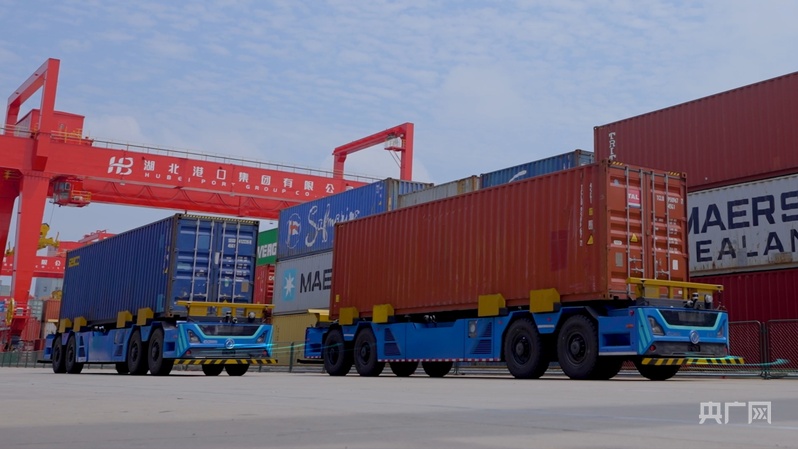 阳逻港内的无人集卡(央广网记者左洋 摄)