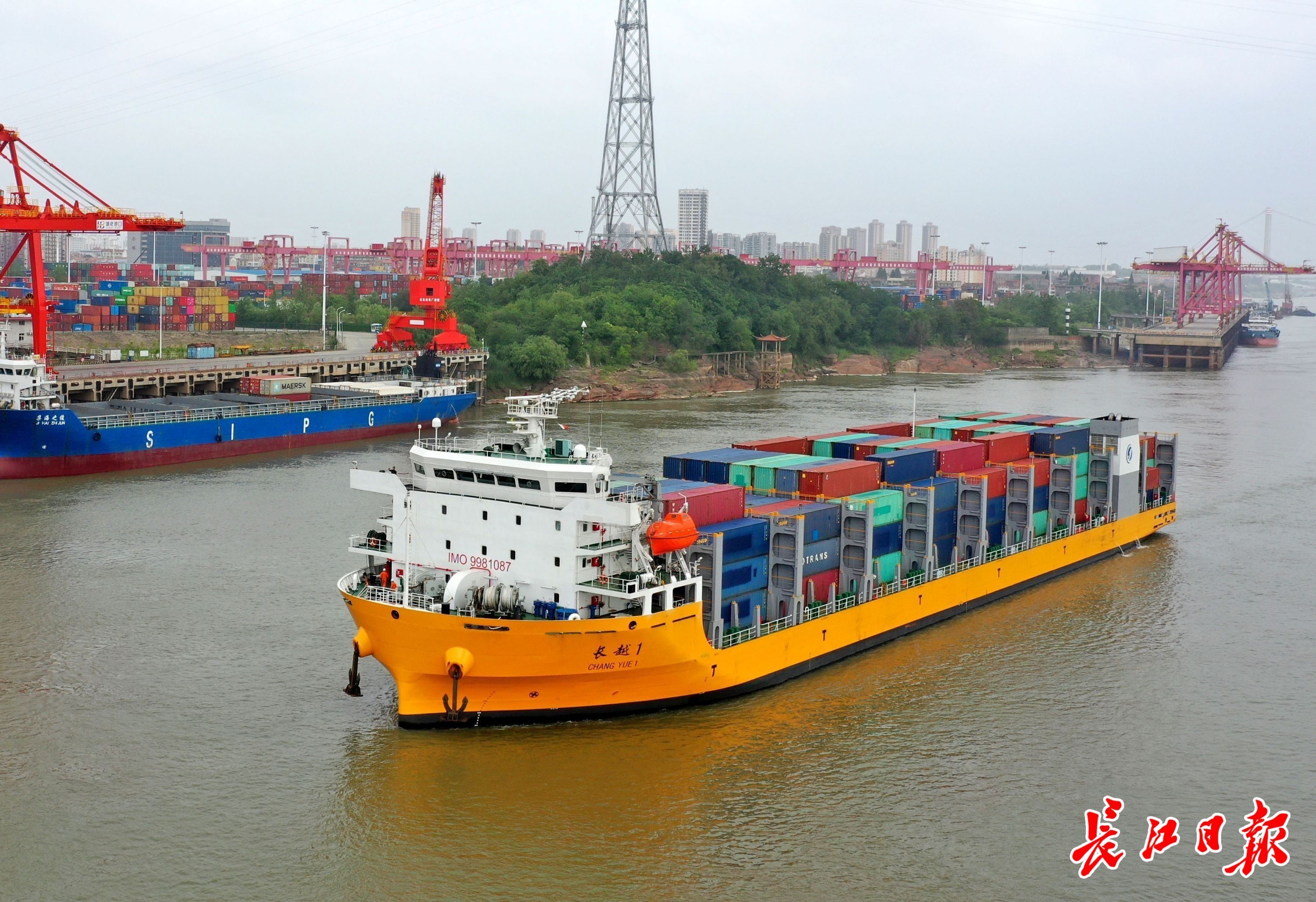 万吨集装箱船长越1号进入阳逻港。