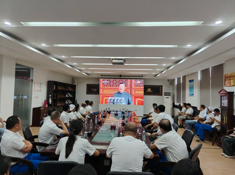 观看现场,全体人员神情庄重,怀着崇敬与激动的心情,共同回顾那段波澜壮阔的抗战历程。同时,集团和各子公司还通过悬挂宣传横幅、大屏展播等形式,营造出浓厚的爱国氛围,大力弘扬伟大的爱国主义精神和抗战精神。