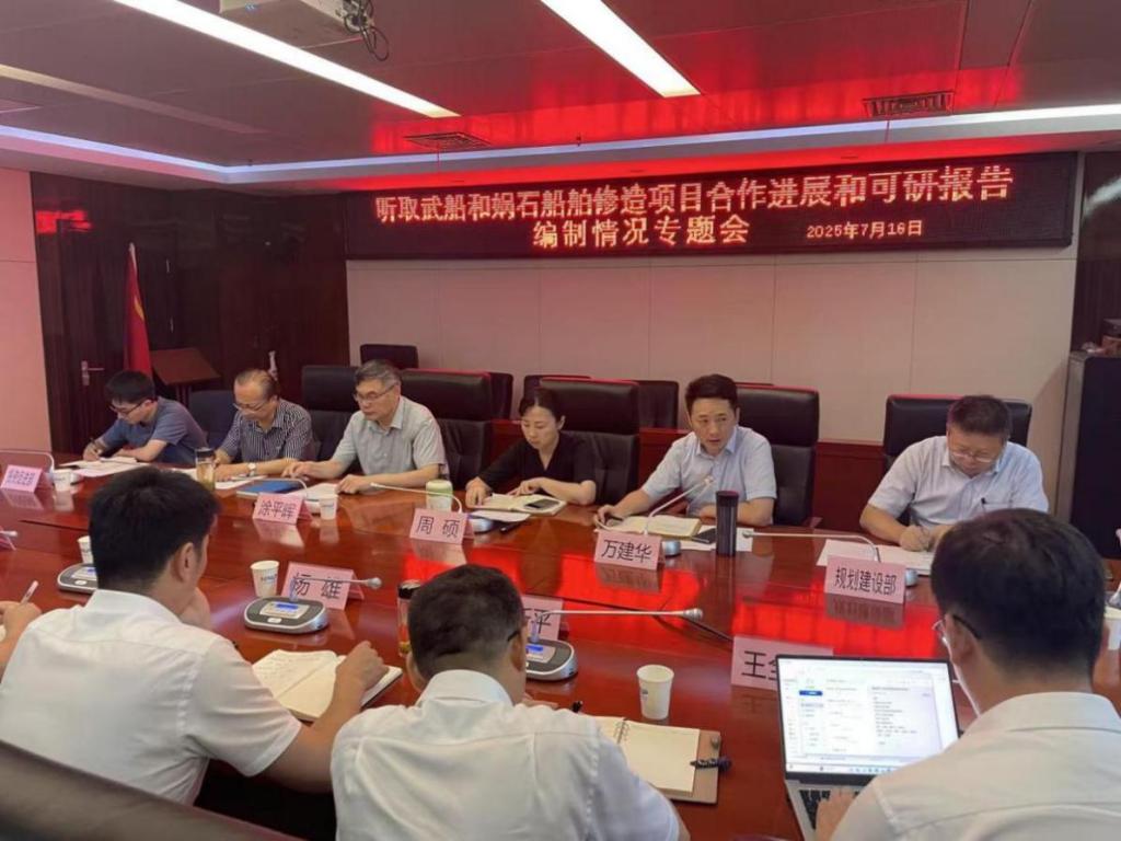 2025年7月16日,武汉长江新区二级巡视员涂平晖召集临港产业园建设服务中心、武船重型工程股份有限公司、武汉娲石港务公司召开关于研究船舶修造项目可研报告专题会。临港产业园建设服务中心主任周硕、副主任陈雁凌、万建华,武船重型工程股份有限公司党委书记、总经理李建操和武汉娲石港务公司董事长总经理杨雄参加会议。