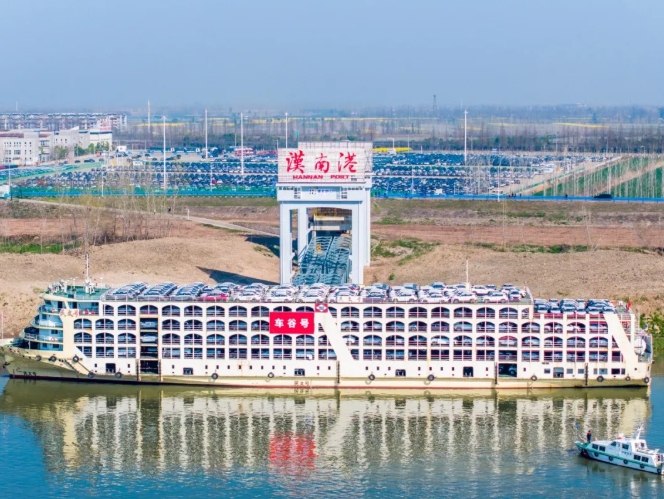 载满650台“车谷造”新能源汽车的长安民生滚装船在汉南港扬帆起航。通讯员供图