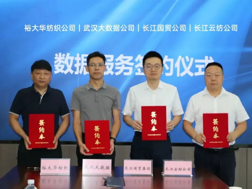2025年8月20日,裕大华集团旗下武汉裕大华纺织有限公司与武汉大数据产业发展有限公司、武汉长江国际贸易集团有限公司、武汉长江云纺供应链有限公司正式签署数据服务合作协议。此次签约,标志着裕大华集团在探索纺织产业链数据交易流通与融合应用方面迈出创新步伐。