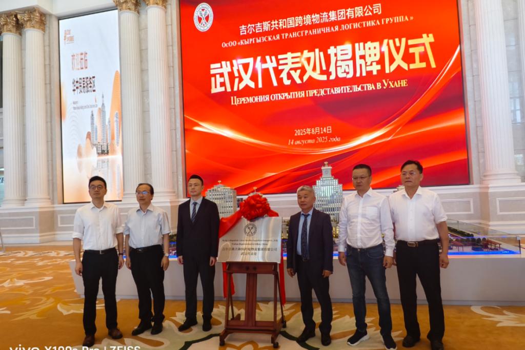 次日,吉尔吉斯共和国跨境物流集团驻武汉代表处在长江新区华中贸易服务区正式挂牌成立。吉尔吉斯共和国总统顾问祖尔皮耶夫·贝克图尔(ZULPIEV BEKTUR)、总统府决策部首席专家苏丹纳利耶夫·萨马特(SULTANALIEV SAMAT)、能源部副部长萨迪科夫·努尔兰(SADYKOV NURLAN)、吉尔吉斯高新科技园董事长陈巍(CHEN WEI)等吉方政府官员与长江新区相关负责人参加揭牌活动。